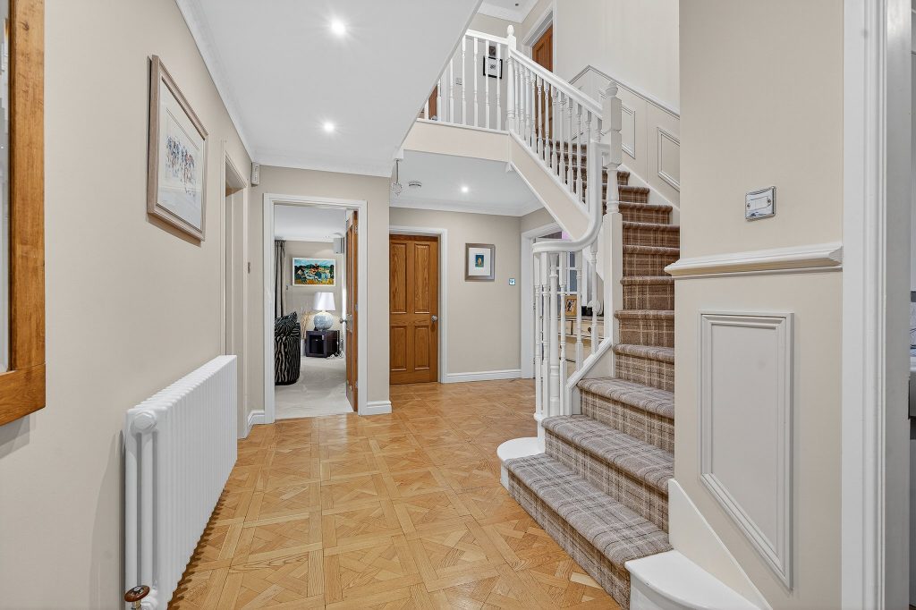 From the moment you arrive, Rennie Court feels special. The sweeping private driveway and landscaped frontage make a memorable first impression, while the distinctive red-brick and render exterior evokes warmth and traditional craftsmanship. Mature trees and neatly tended gardens frame the property, creating an immediate sense of calm and seclusion – a perfect sanctuary for family life.