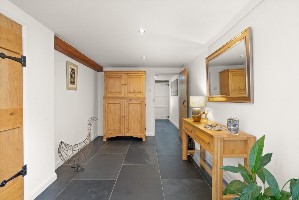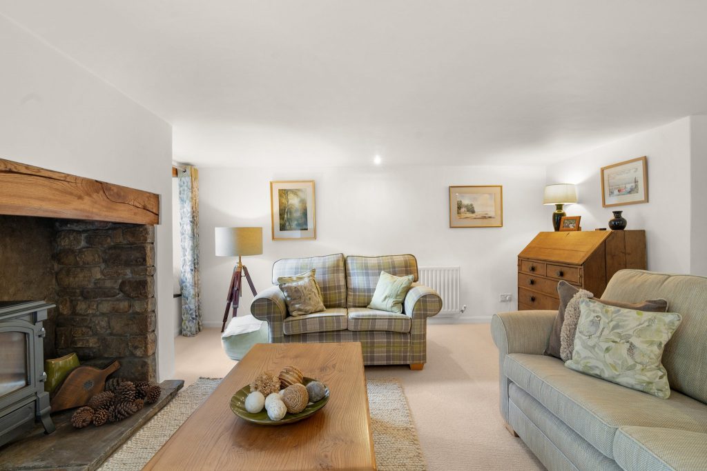 • Warm And Inviting Interiors Featuring Exposed Beams, Brazilian Slate Floors, And A Cosy Inglenook Fireplace With Log Burner.