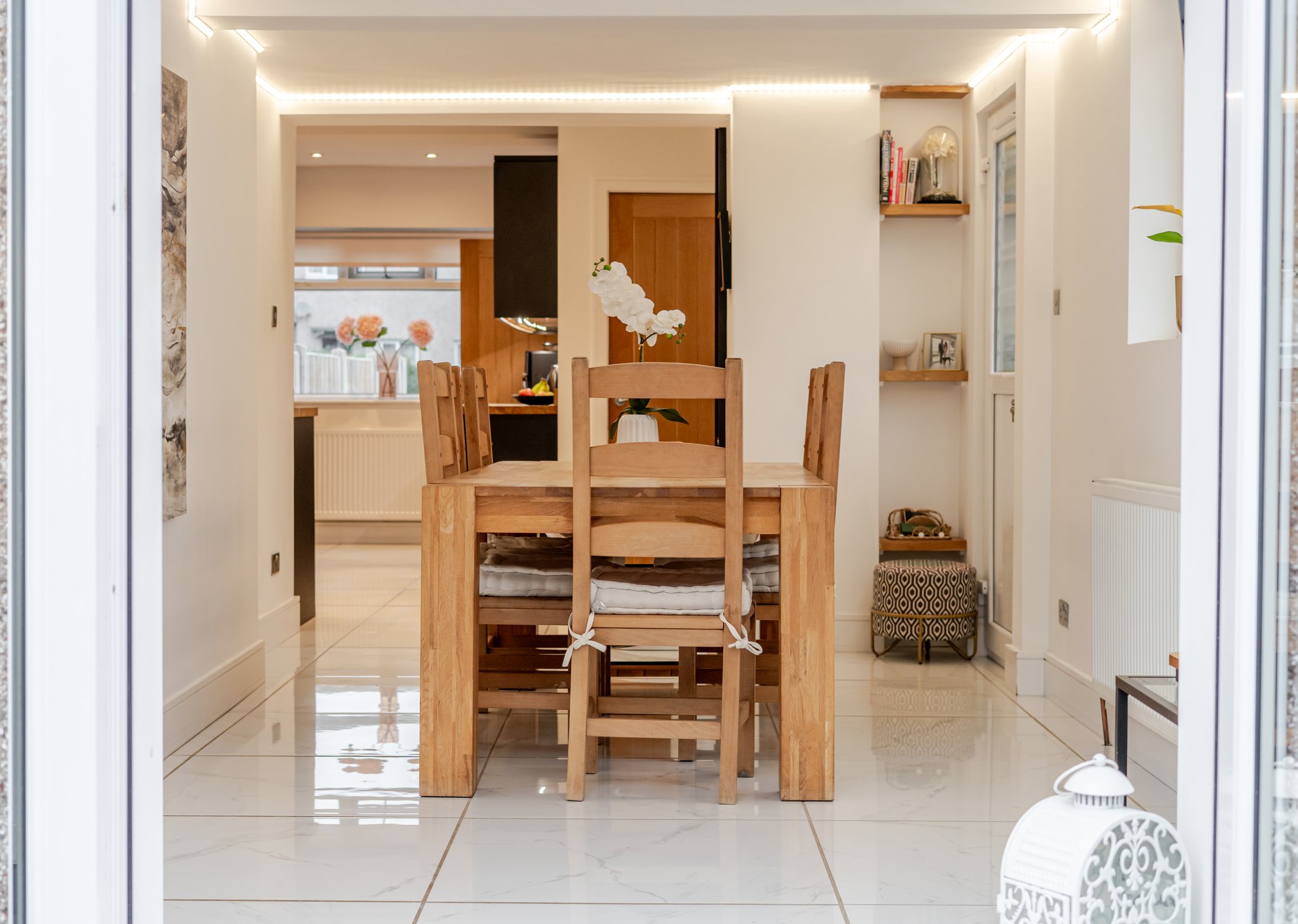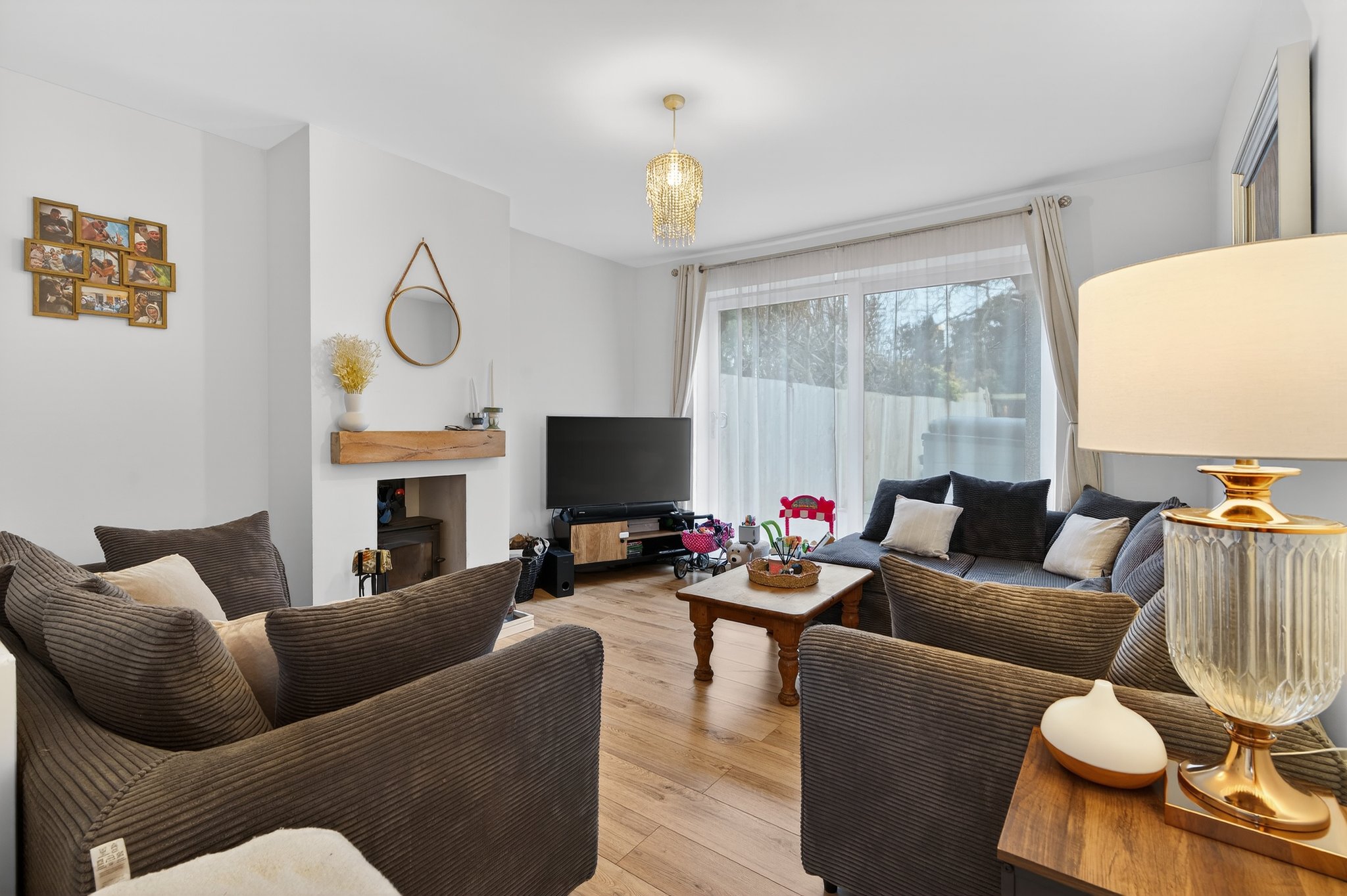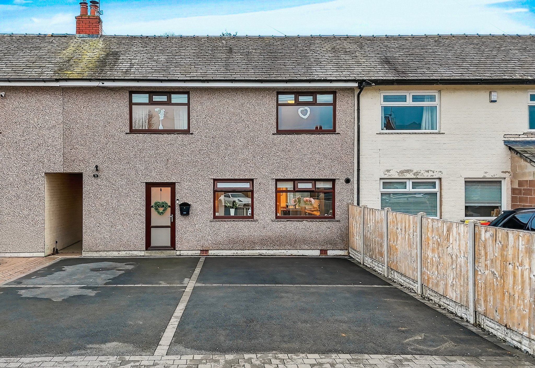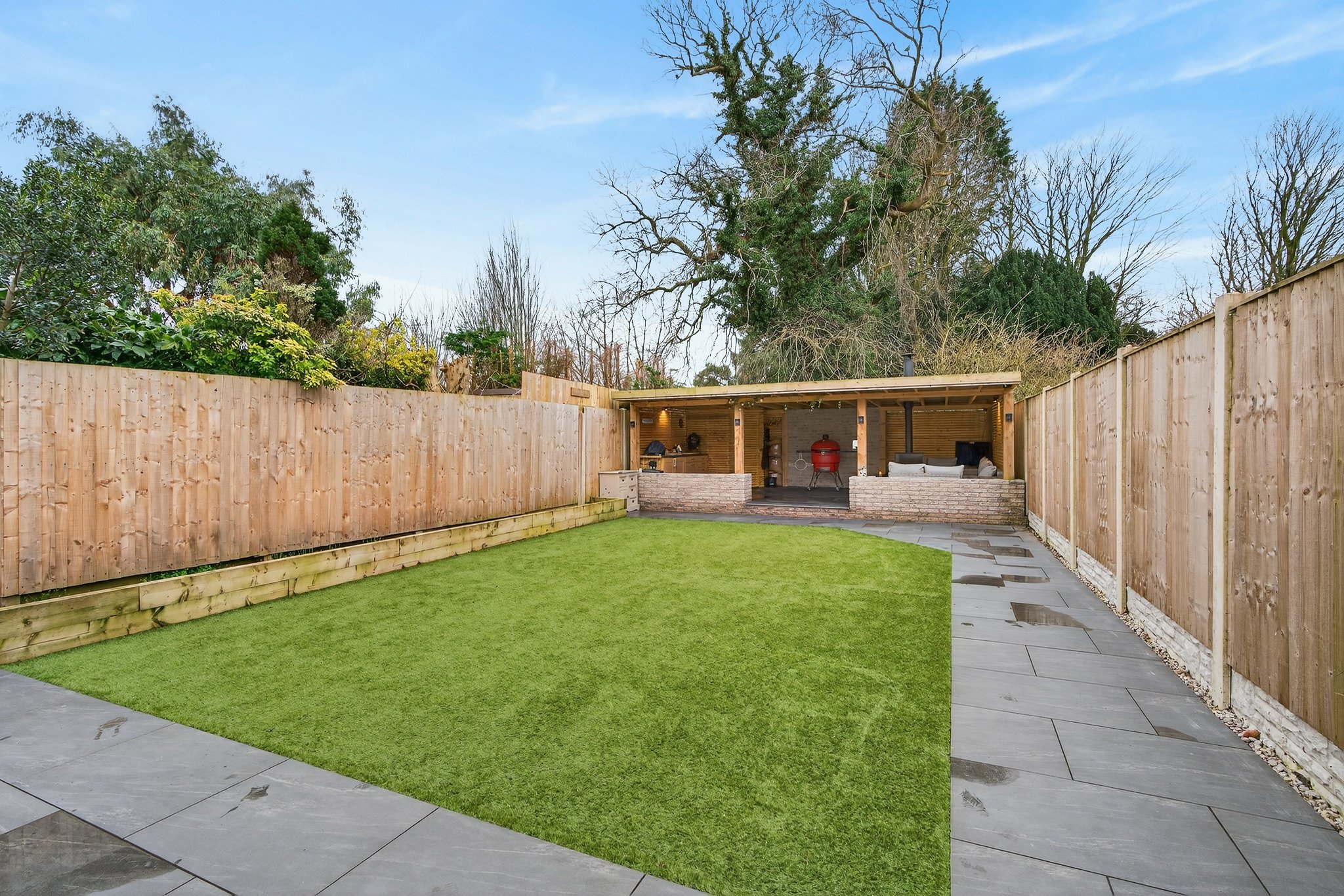 A beautifully presented three-bedroom mid-terrace home finished to an exceptional standard throughout, offering stylish and spacious accommodation ideal for modern family living. The property features an elegant lounge with patio doors to the garden, a contemporary open-plan kitchen diner, three well-proportioned bedrooms and a modern family bathroom. Externally, the home benefits from a driveway providing off-road parking for multiple vehicles and an large landscaped rear garden, complete with a superb covered exceptional sized outdoor kitchen and entertaining area with WC, perfect for hosting and enjoying outdoor living.